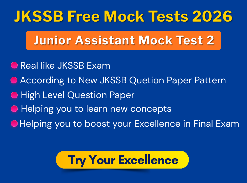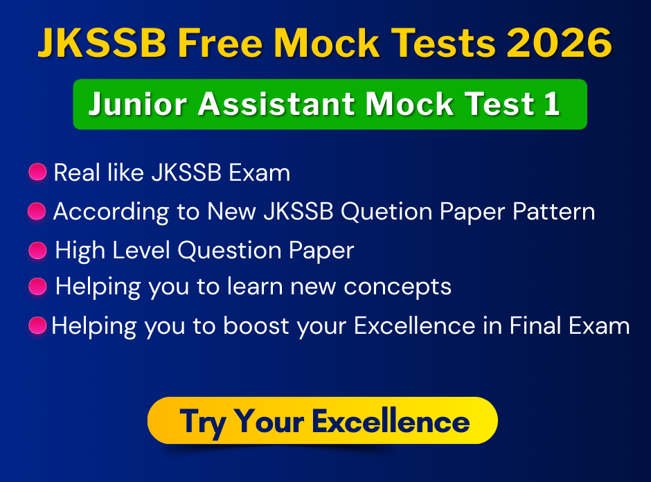 We provide Free MCQs for all competitive exams like JKSSB, SSC, Banking, Railway and Defence Exams, etc. Which will help you to master the Actual Exam